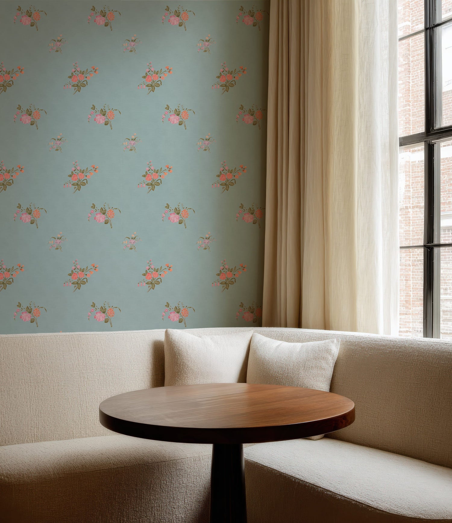 Bring the tranquility of an English garden into your home with our Vintage Heirloom Floral Bouquet wallpaper, where delicate coral and pink blooms dance gracefully across a soothing blue background. Each hand-drawn bouquet showcases intricate botanical details, creating a pattern that feels both nostalgic and refreshingly modern. The calming blue background provides the perfect backdrop for these romantic floral arrangements, making this wallpaper ideal for bedrooms seeking serenity, nurseries that need gentle charm, powder rooms craving elegance, or any space where you want to cultivate a sense of peaceful sophistication. Choose from removable peel and stick for rental-friendly installation, traditional commercial-grade Type II for permanent beauty material for high-traffic professional environments.