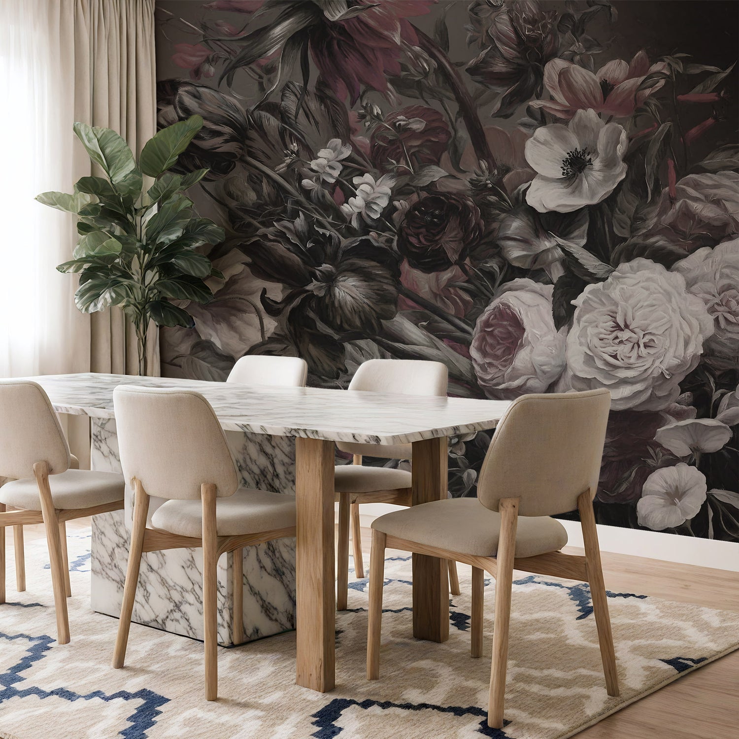 Immerse your home in the intellectual drama and timeless beauty of the Ophelia Dutch Dark Academia Floral Wallpaper Mural. A masterpiece designed by artist Marina Stupakova, this mural captures the essence of the Dark Academia aesthetic - moody, romantic, and steeped in art history.