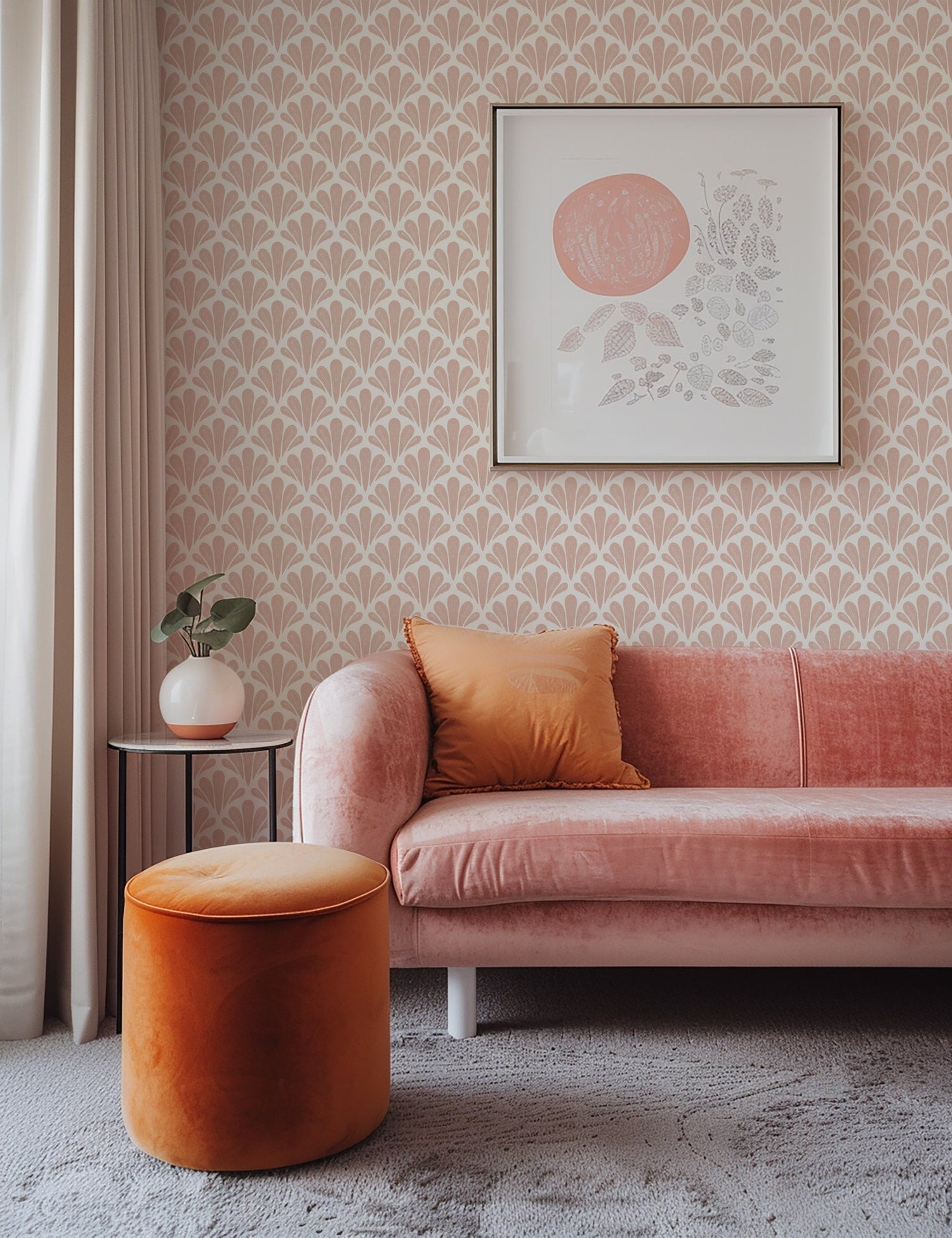 Ideal for accent walls, powder rooms, lobbies, and boutique spaces, this design instantly elevates without overwhelming. Crafted using premium peel and stick or traditional wallpaper materials, Brushstroke Scallops makes luxury feel effortless.