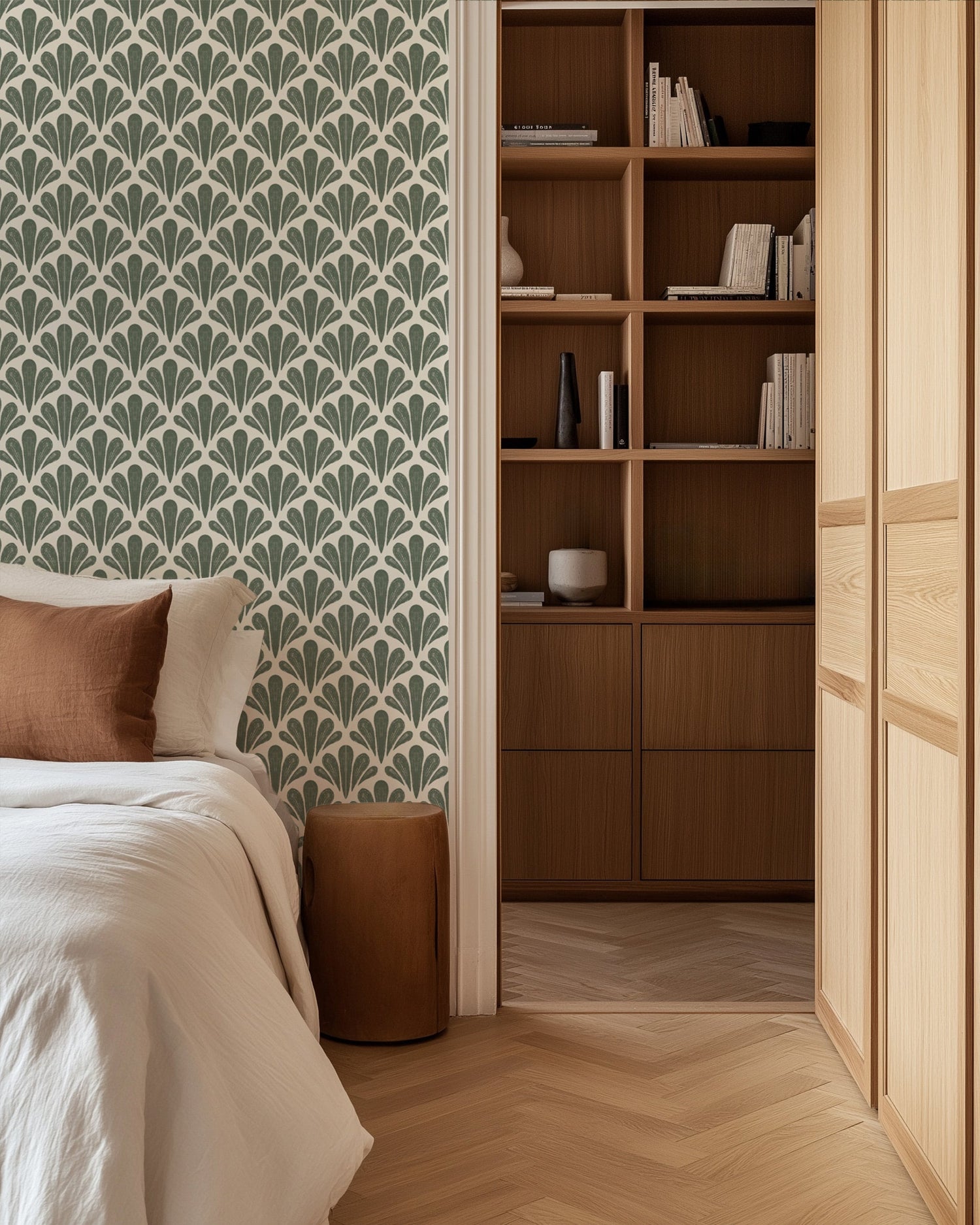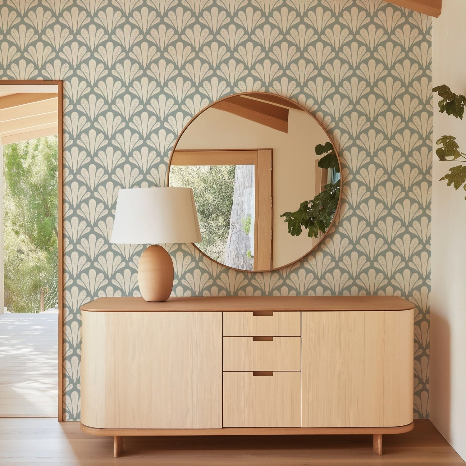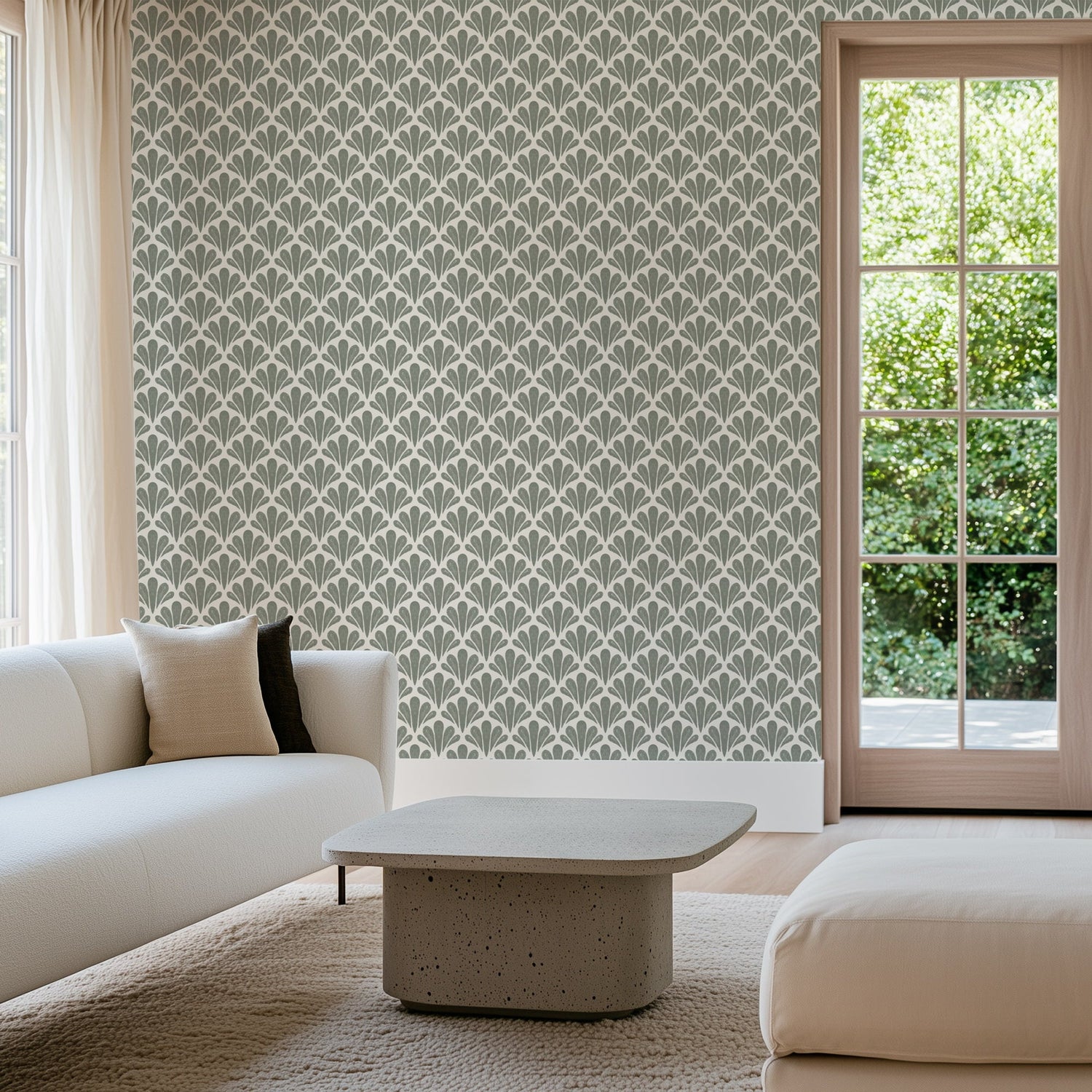 Add refined movement and timeless charm to your interiors with Brushstroke Scallops by Nirali Gandhi, a modern wallpaper inspired by classic Art Deco motifs and organic brushwork. The hand-drawn scallop pattern offers a fresh take on geometry - soft, rhythmic, and elegantly imperfect.