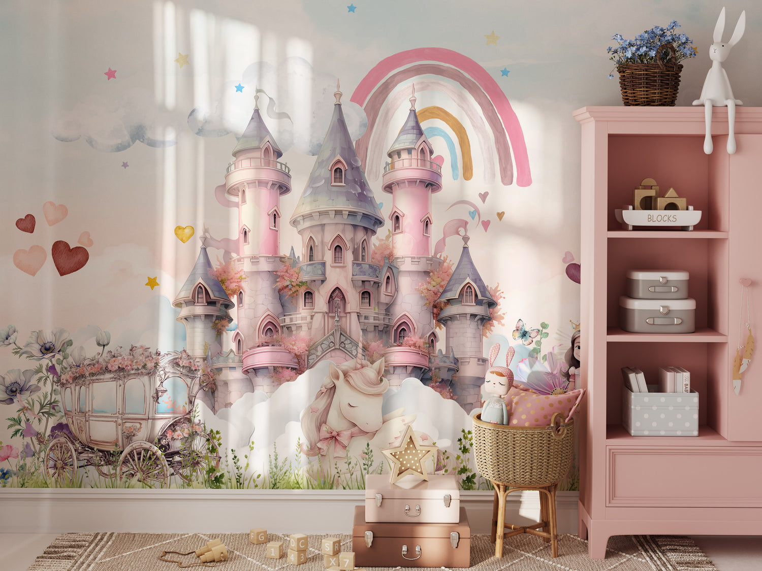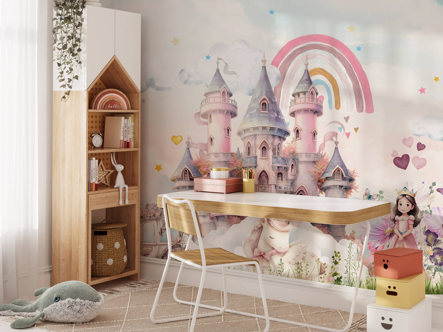 Enchanting Unicorn Princess Castle Wallpaper Mural