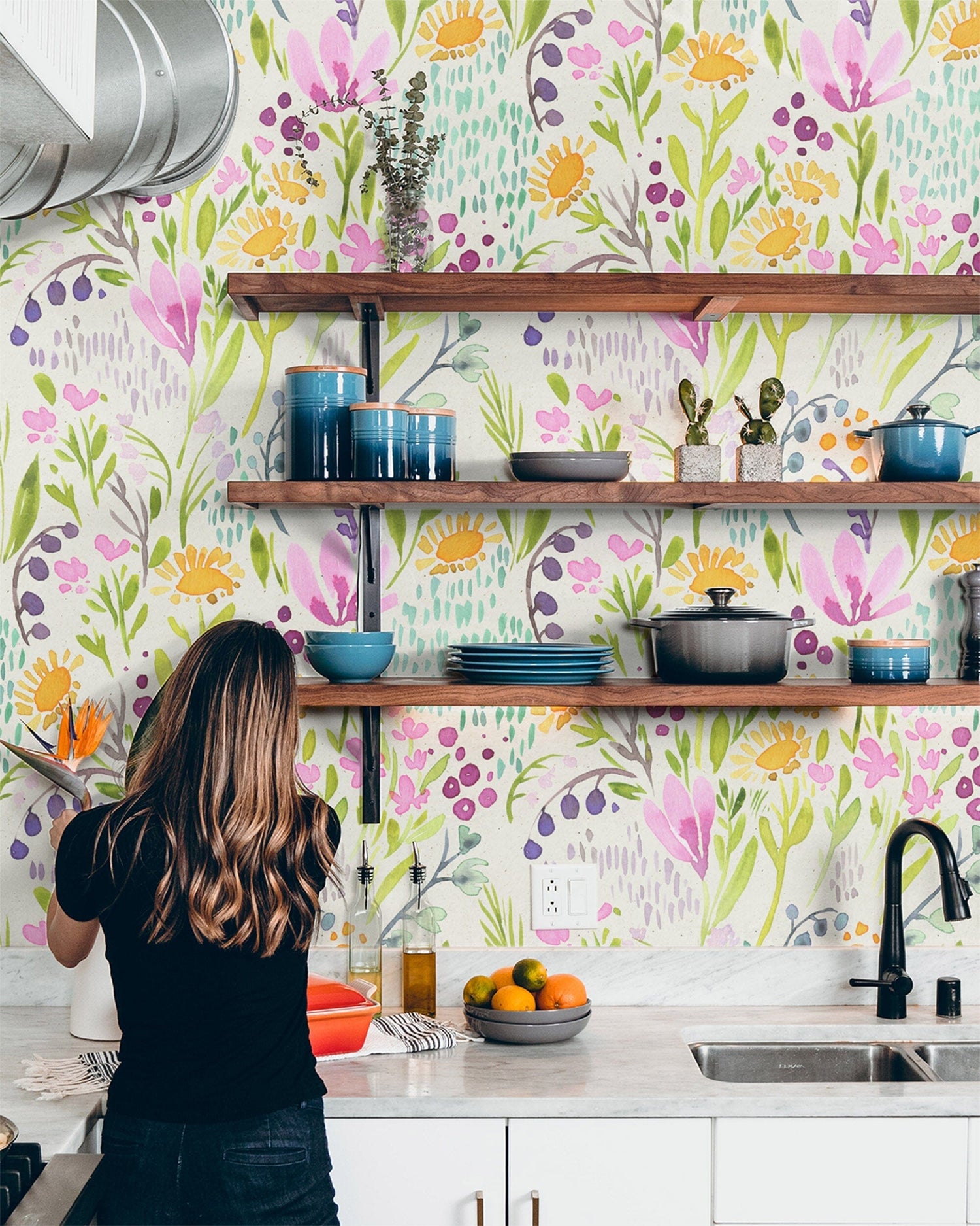 Create a vibrant atmosphere in your home with this colorful, hand painted wallpaper! Perfect for a girl's room decor, this wallpaper will bring a cheerful feel to any space. Bring joy into your home today!