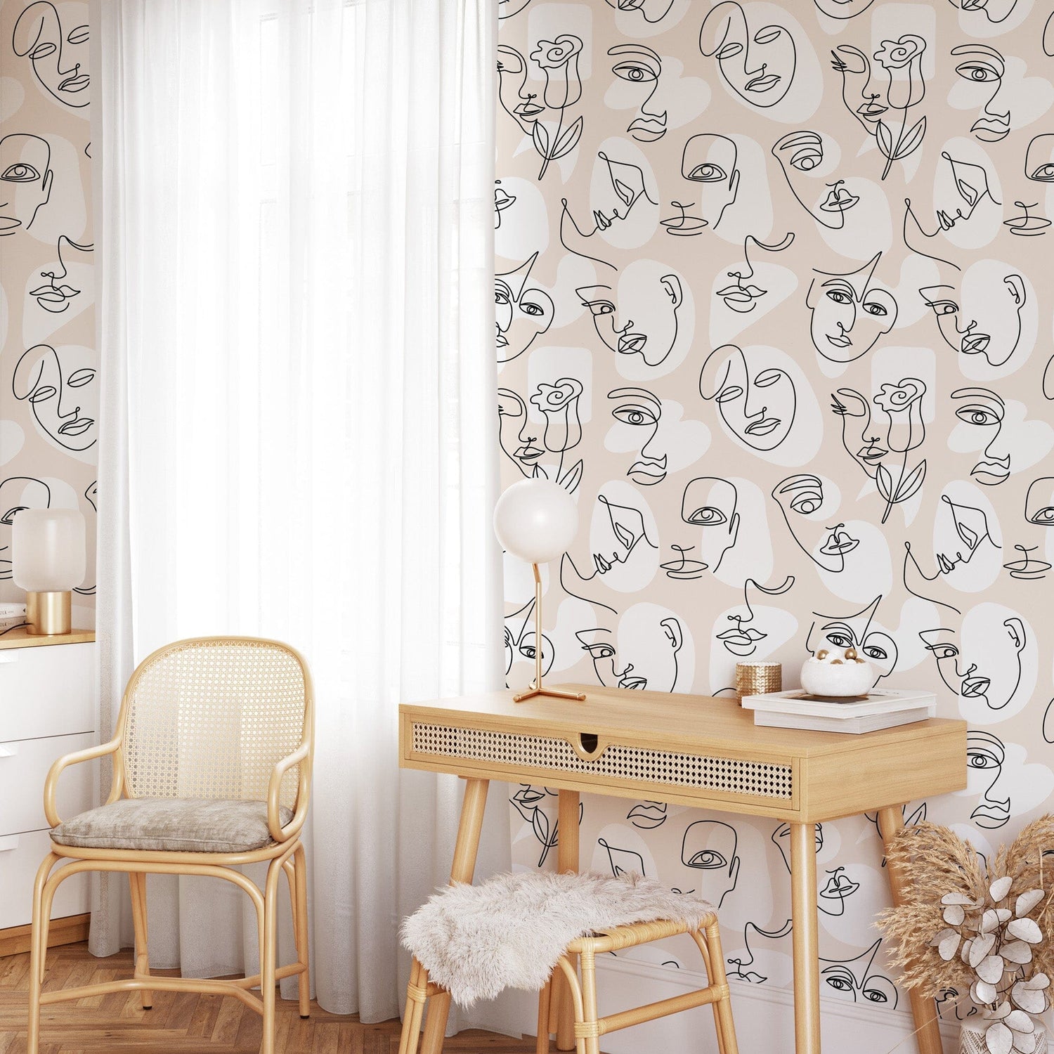 Add a modern femme flair to your walls with our Abstract Line Face Wallpaper! Make your home or office look sophisticated and stylish with peel and stick removable wallpaper.