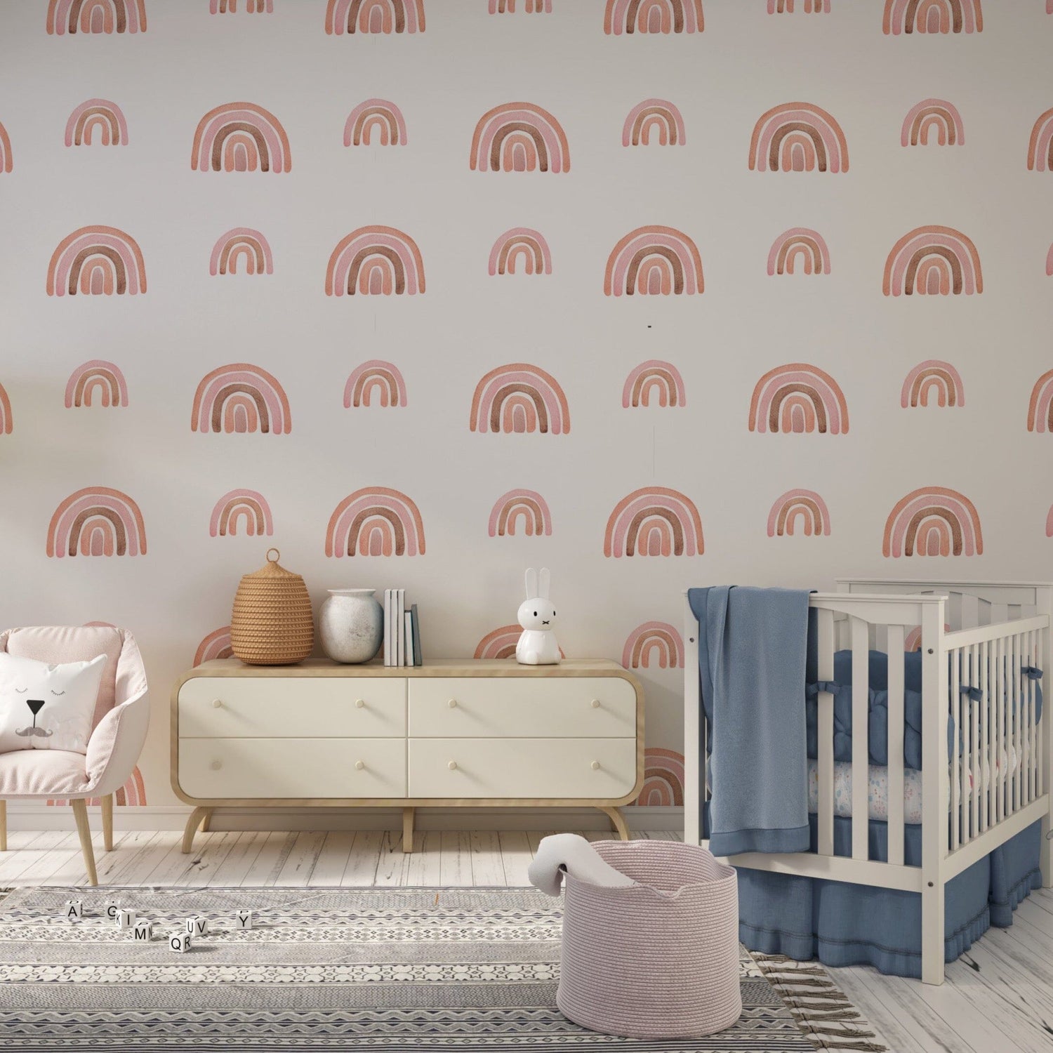 Pastel Boho Rainbow Peel and Stick Wallpaper | Girls Room Wall Decor