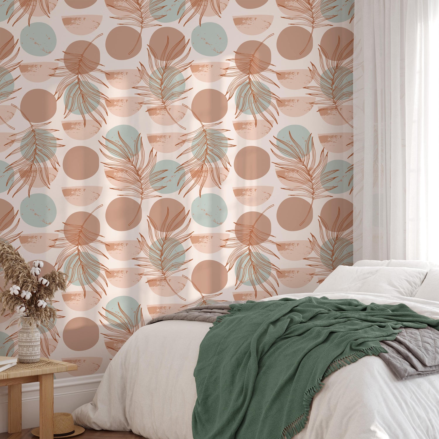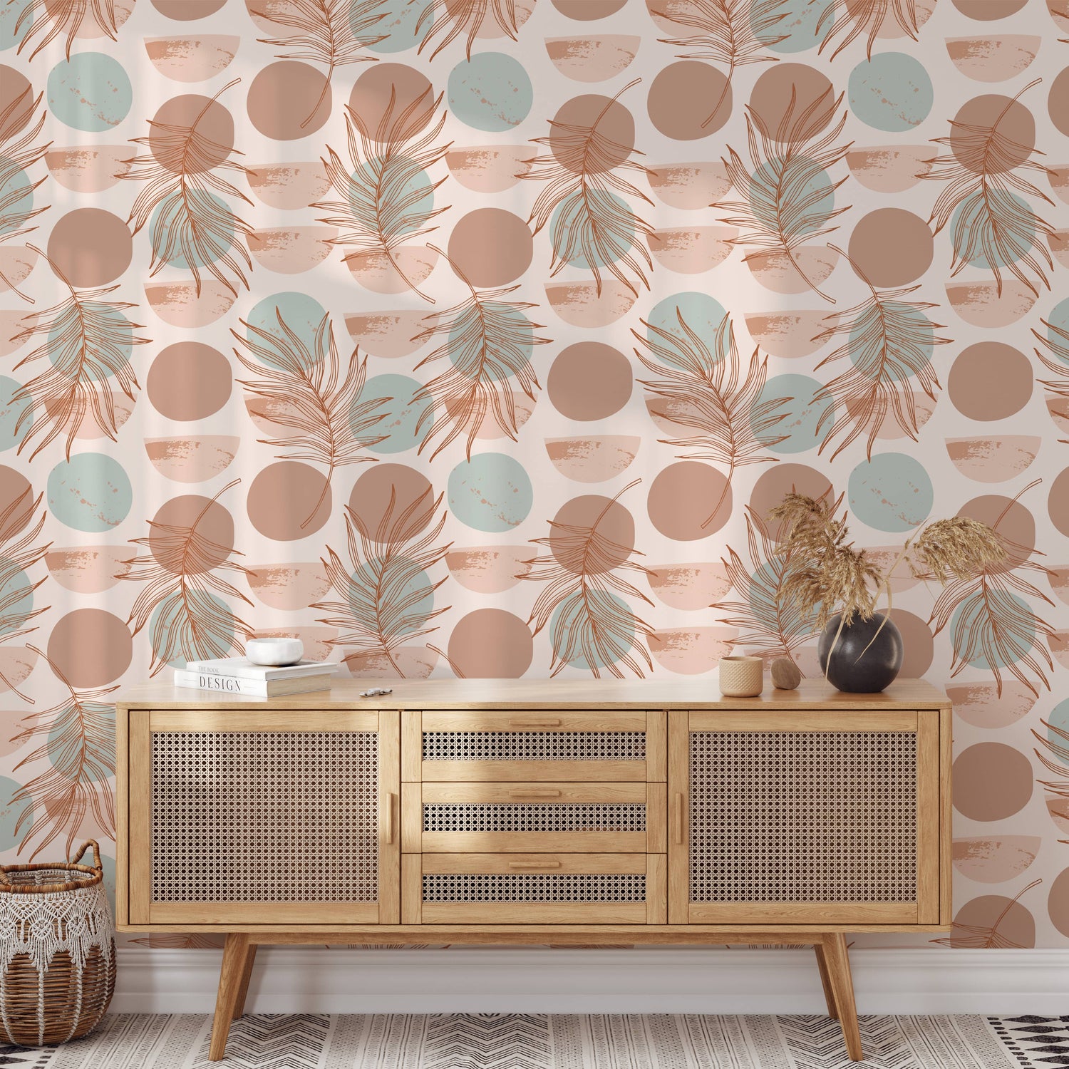 This retro minimalist wallpaper is a great way to add a touch of boho charm to your walls. Easily apply the peel and stick wallpaper for an effortless yet stylish look. Let your personality shine!