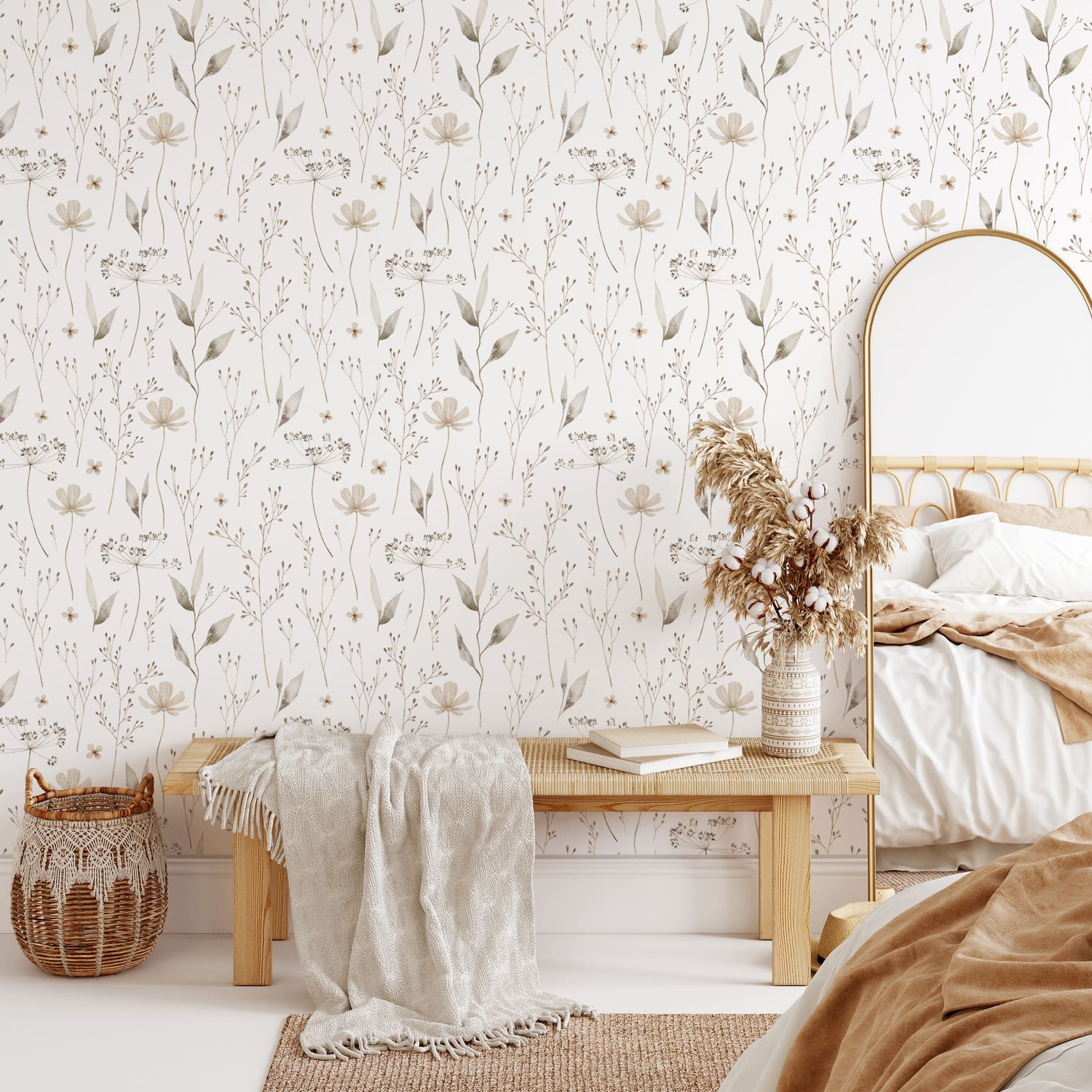 The gentle floral and botanical elements in muted tones make it a versatile choice that complements both modern and traditional decor styles. Transform your walls with the serene and timeless charm of this exquisite wallpaper.