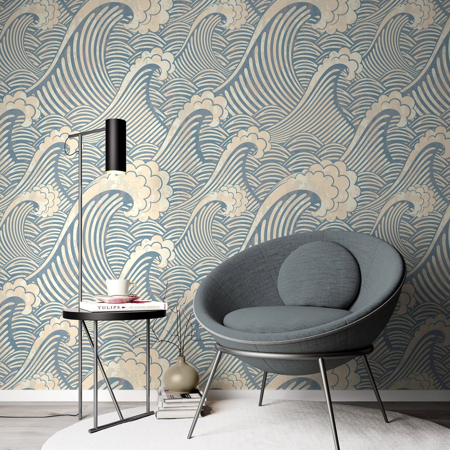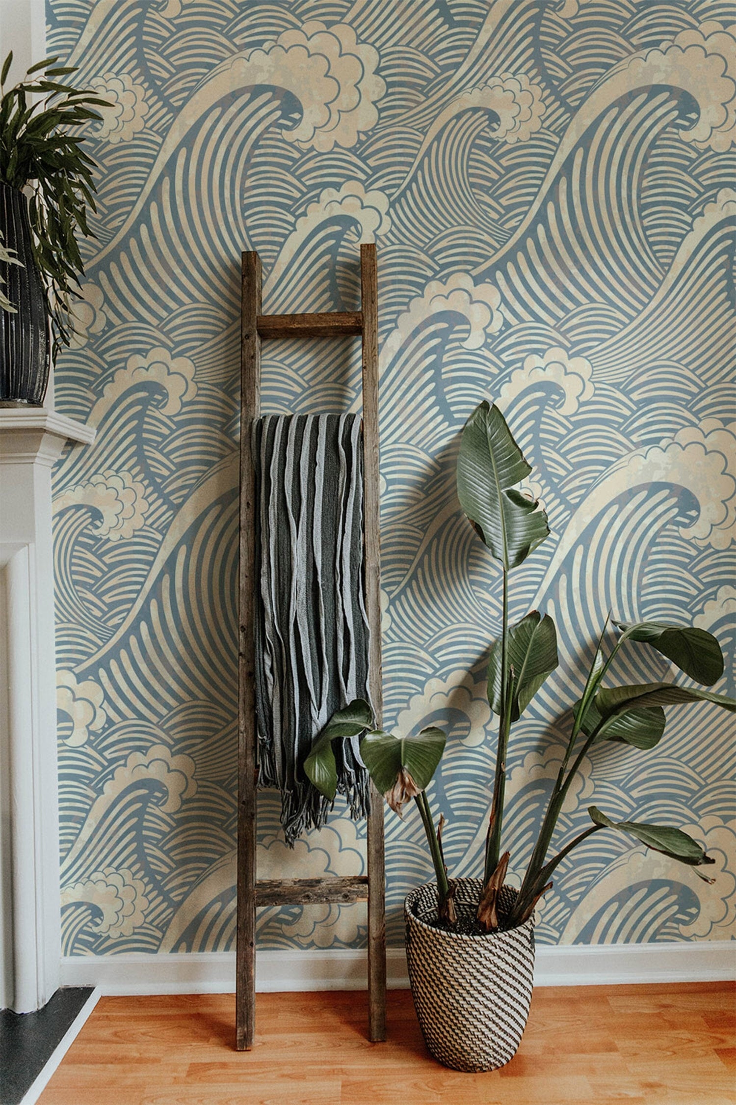 Transform your space with our Aesthetic Wave Wallpaper. The stunning Blue Hawaiian Waves Wallpaper design adds a touch of nautical beauty. Our easy to use peel and stick wallpaper is perfect for quick makeovers and renter friendly.