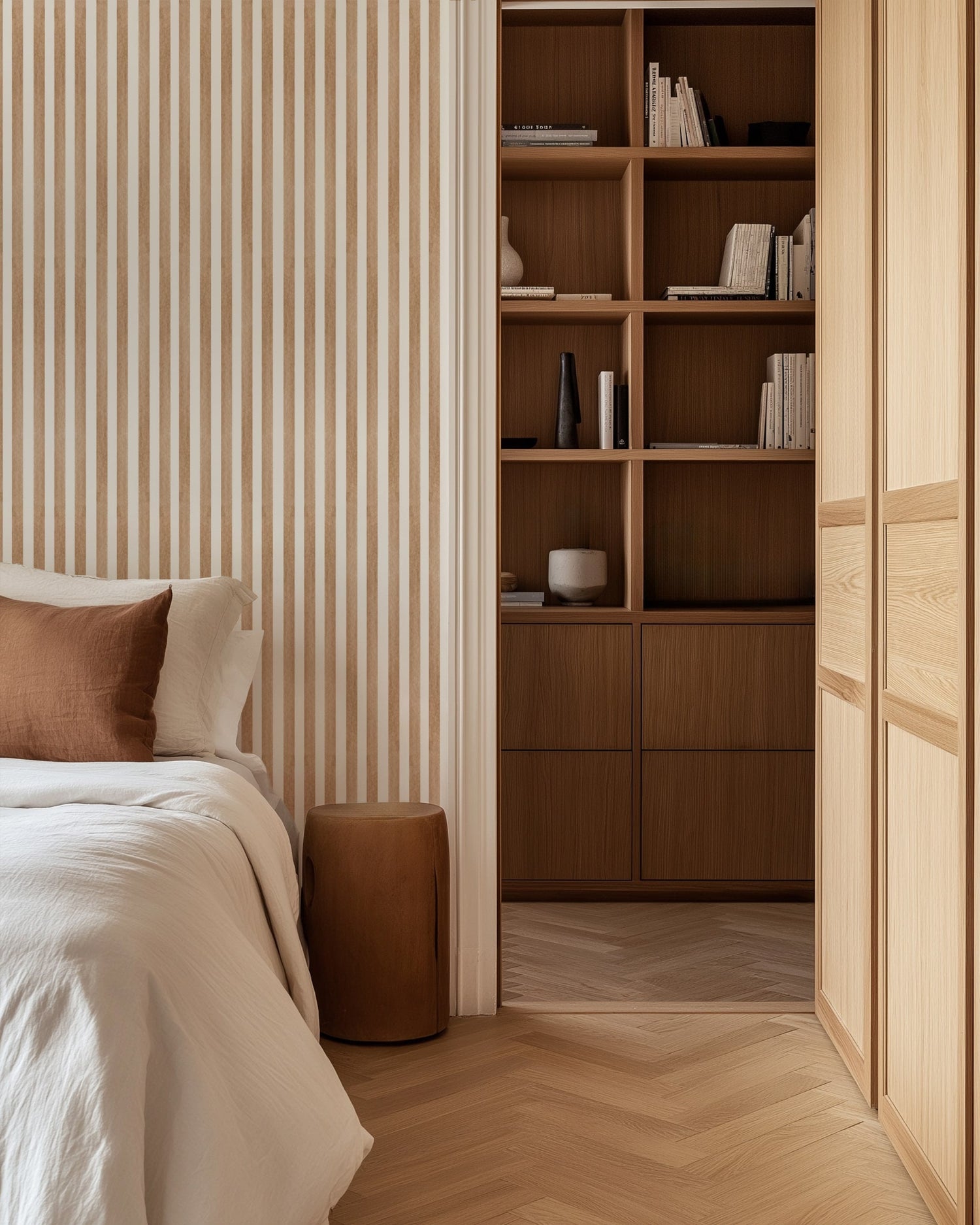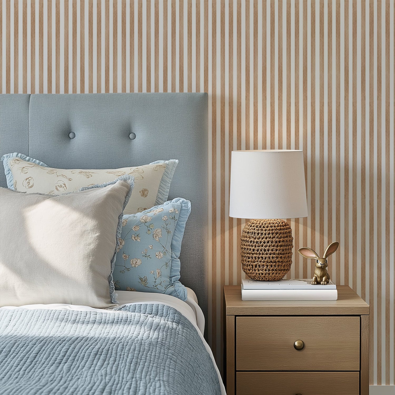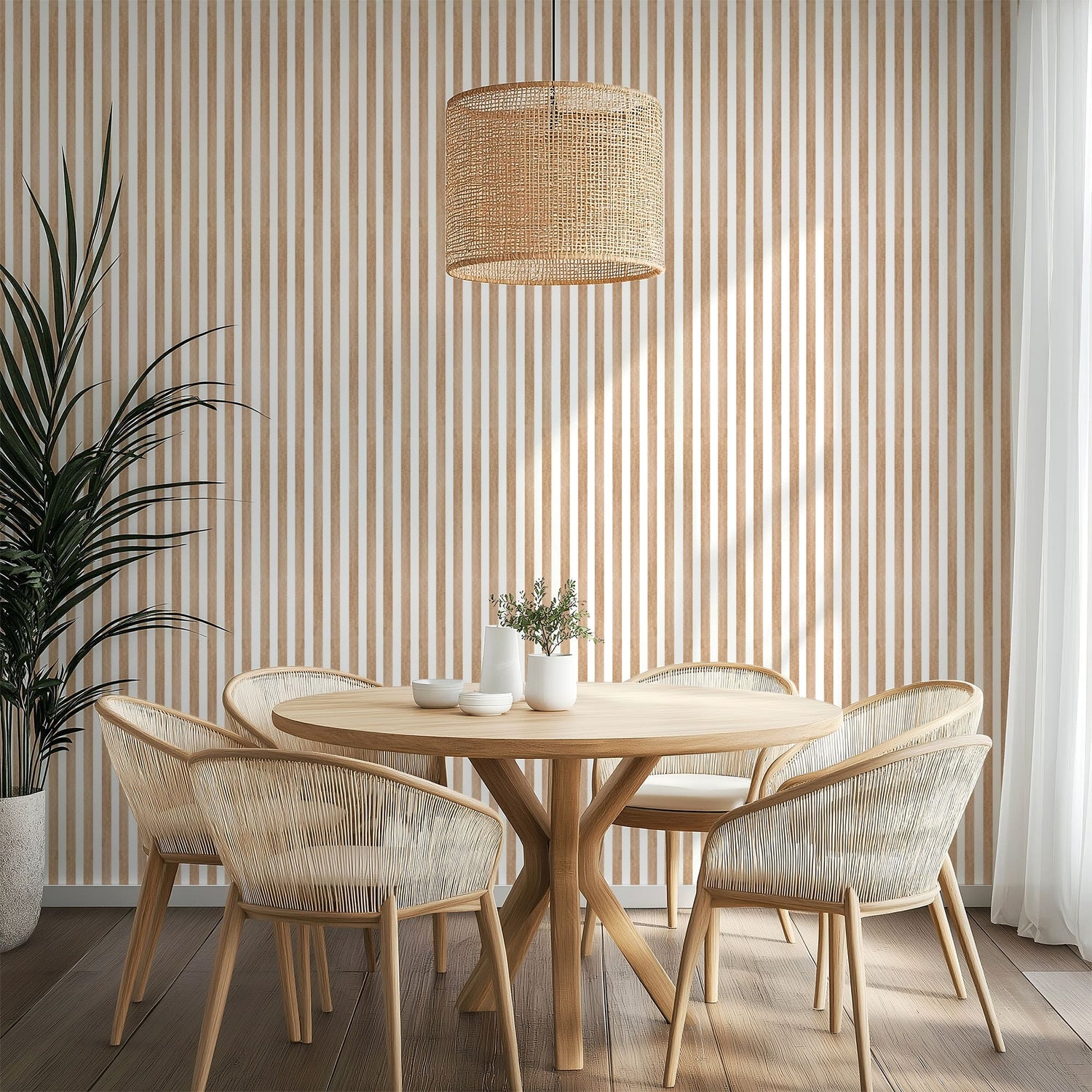 Instantly elevate any space with our Timeless Artisan Stripe Wallpaper, a bestseller crafted for discerning tastes. This isn't just a pattern; it's an experience of understated luxury. Each natural brown stripe features a unique, subtle texture, a nod to handcrafted artistry, perfectly complemented by crisp white.