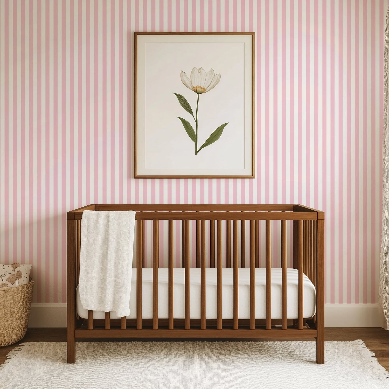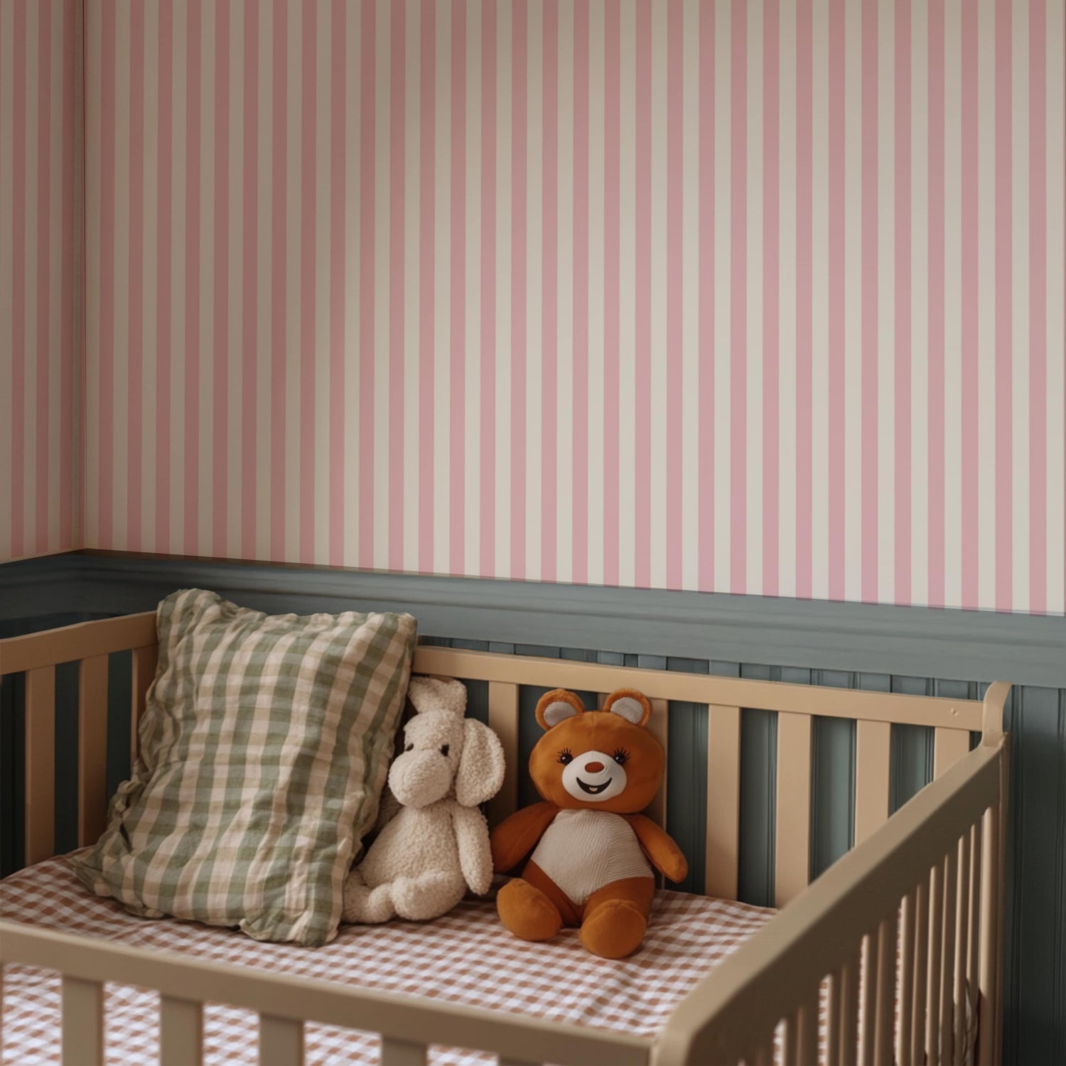 Welcome a fresh, playful charm into your space with Blush Riviera - a pink vertical striped peel and stick wallpaper designed to make walls feel airy, joyful, and effortlessly stylish. Inspired by the relaxed coastal elegance of French resorts, this pattern brings soft structure and a hint of nostalgia, perfect for nurseries, playrooms, boutiques, and modern cafes.