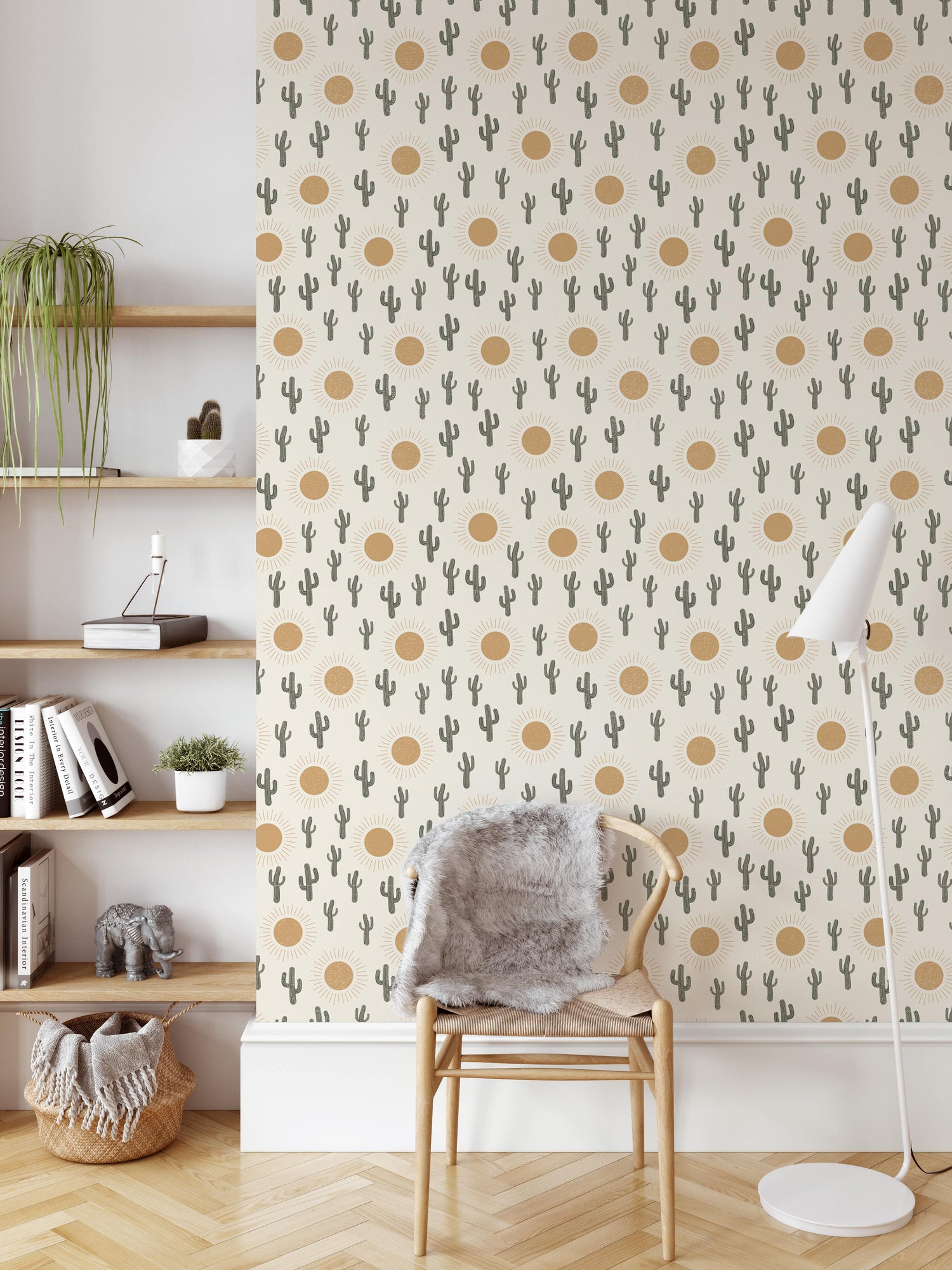 Create a serene desert oasis in your home with our Desert Wallpaper, showcasing a timeless, simple western style cactus pattern that captures the essence of the desert.