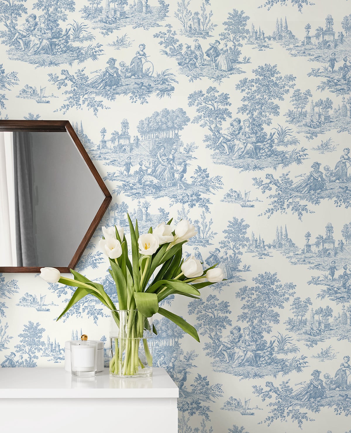 Chateau Toile Vintage Prepasted Wallpaper - Blue Bell / Bolt (20.5 in. x 33 ft.) is backordered and will ship as soon as it is back in stock.