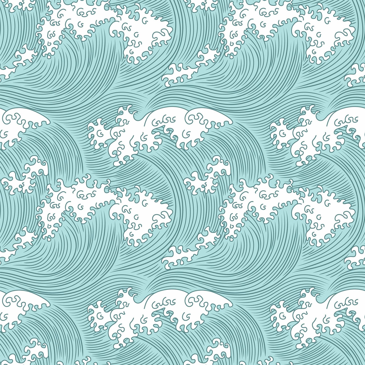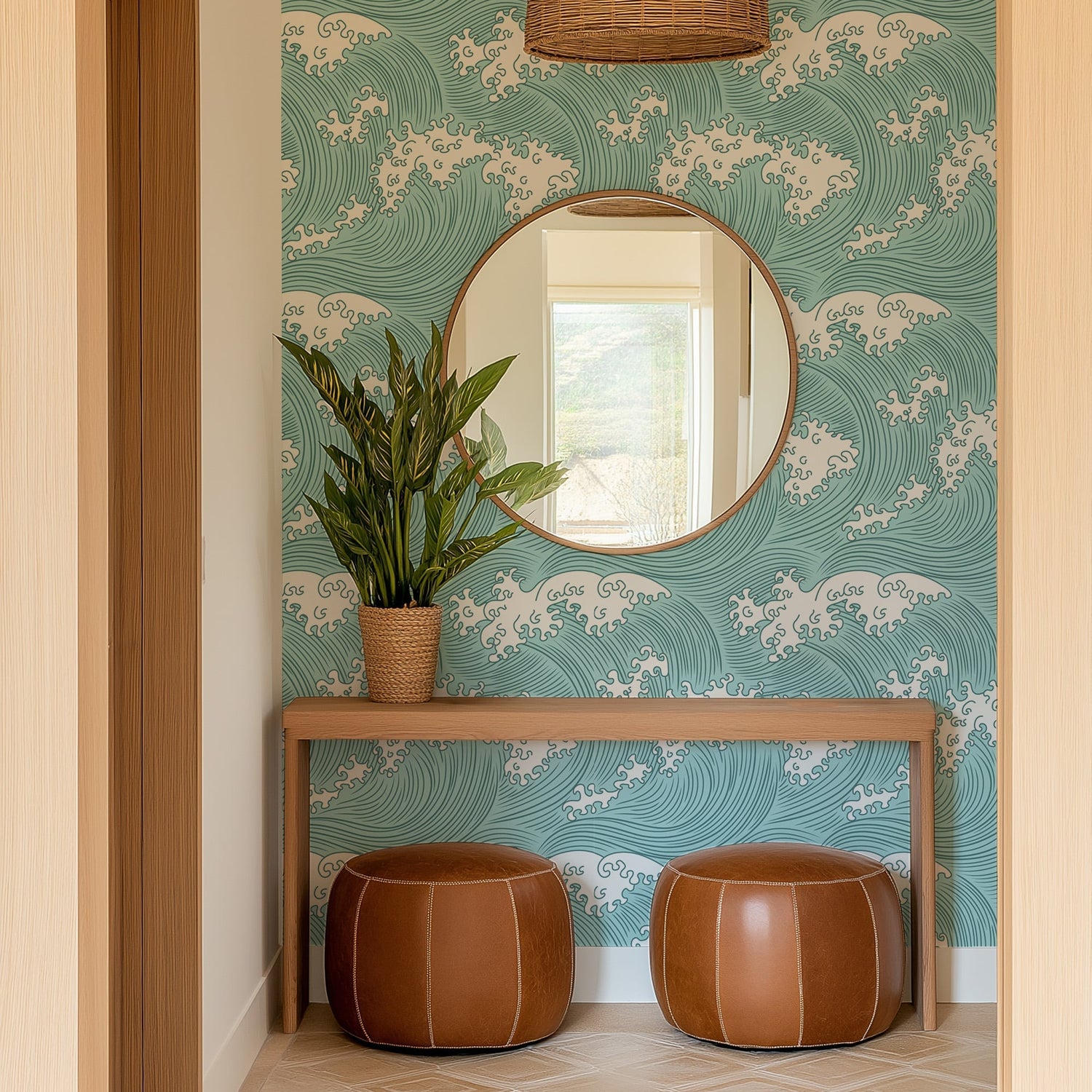 Coastal Japanese Wave Peel and Stick & Traditional Wallpaper
