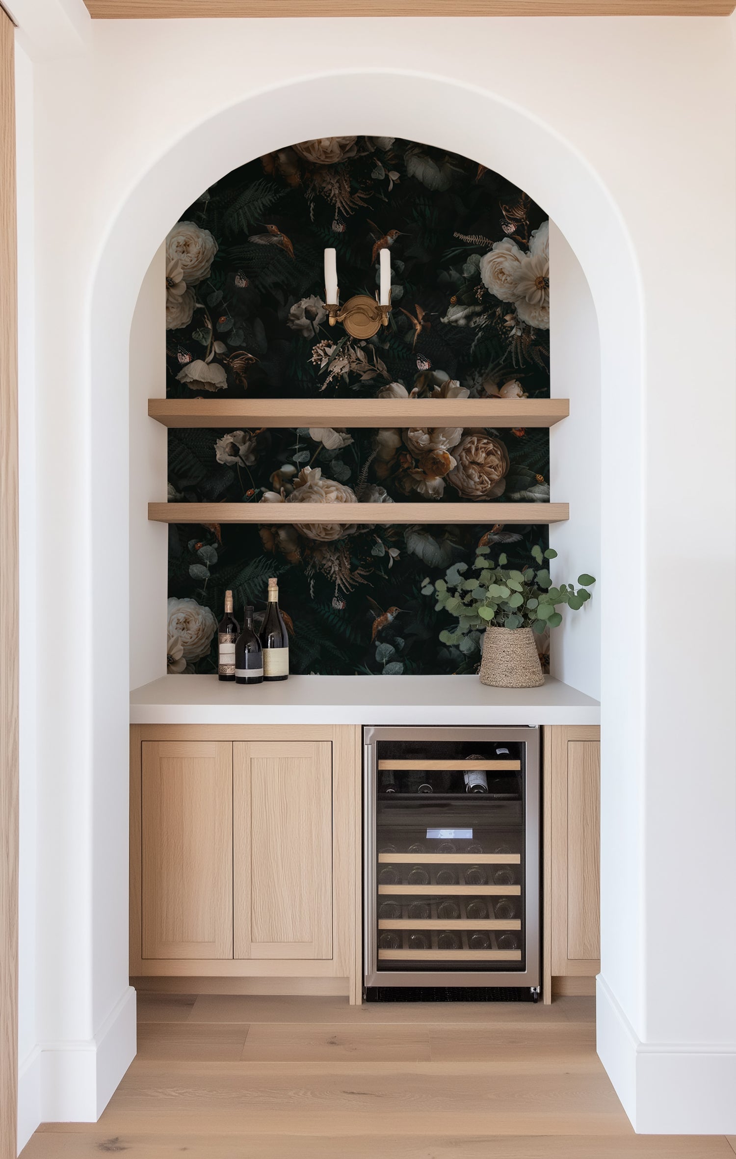 Dark Background Cream Floral Wallpaper is a high quality wall covering. Its dark background creates a dramatic backdrop for its cream floral accents, providing an elegant and sophisticated look to any interior space. Available in removable peel and stick and traditional canvas wallpaper materials.