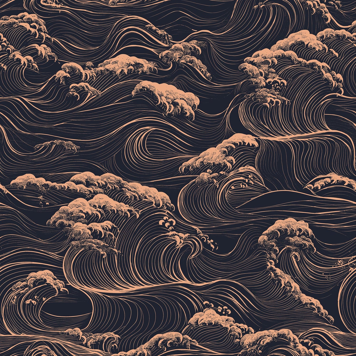 Dark Gold Ocean Waves Wallpaper - Sample: 12''W x 10''H / Smooth Vinyl Peel & Stick is backordered and will ship as soon as it is back in stock.