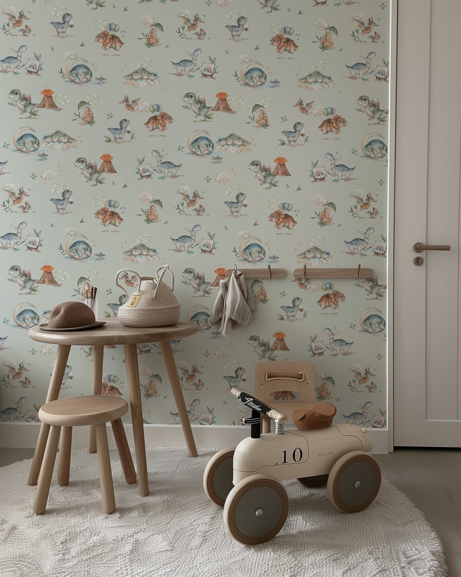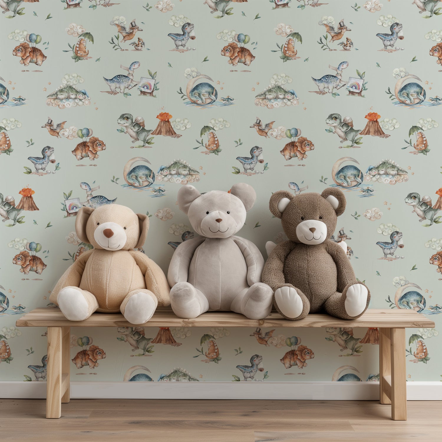 Dino Era Serenity – Watercolor Dinosaur Wallpaper for Nurseries & Kids Rooms