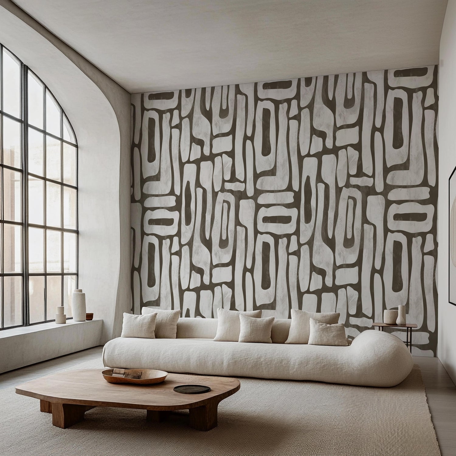 Transform your walls into a statement piece with our Earthy Abstract Shapes Wallpaper. Featuring hand-painted organic lines and bold geometric forms in neutral brown and white tones, this design adds a modern artistic edge to any interior.