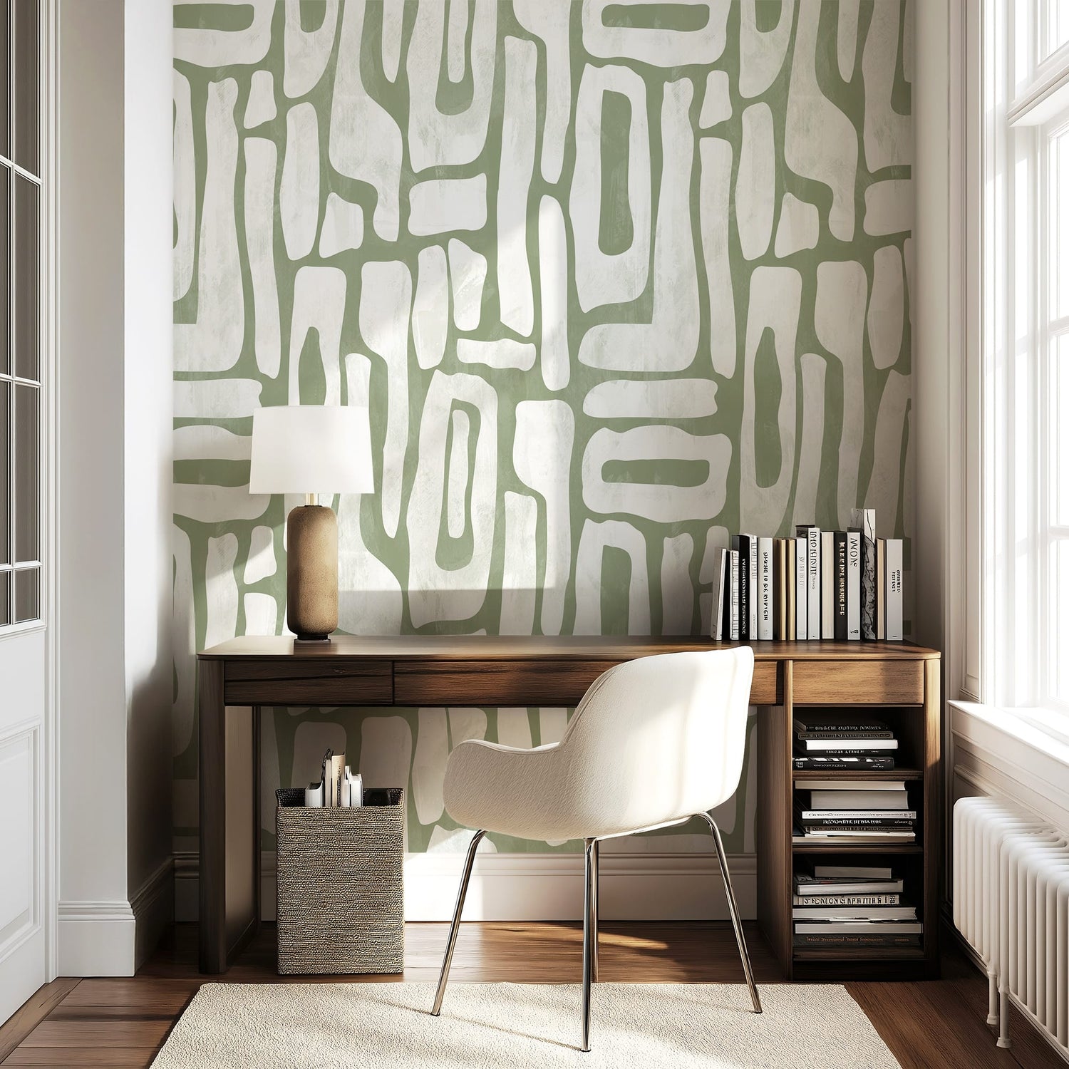Bring a modern and organic touch to your space with the Modern Abstract Sage Green Geometric Wallpaper. Inspired by hand-painted artistic forms and natural geometry, this design adds visual rhythm and a calming atmosphere to both residential and commercial interiors.