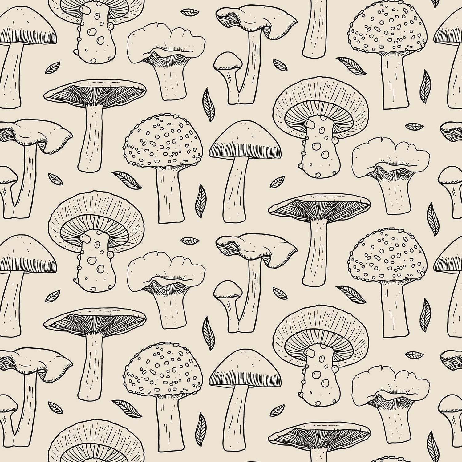 Pattern Mushroom Wallpaper - Black and White Wallpaper