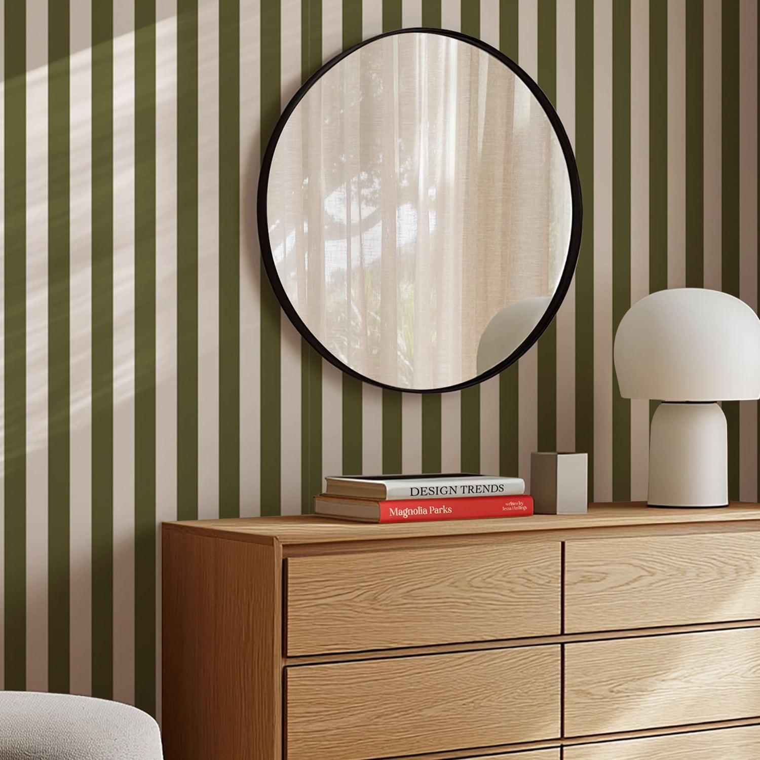 Olive Coast - Green Vertical Striped Removable Wallpaper