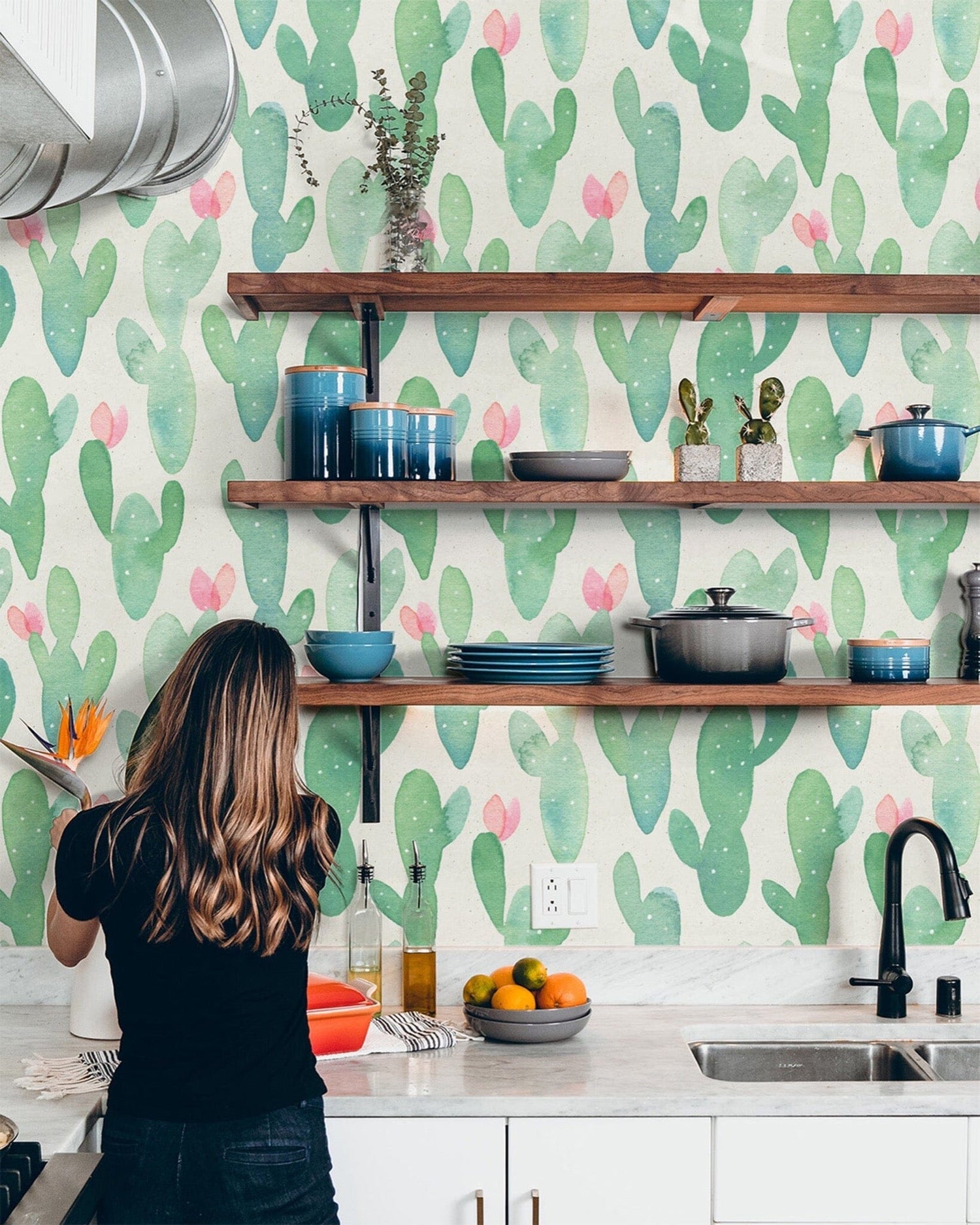 Pastel Cute Cactus Wallpaper, Cactus Wall Mural, Peel and Stick Removable Wallpaper, Traditional Wallpaper