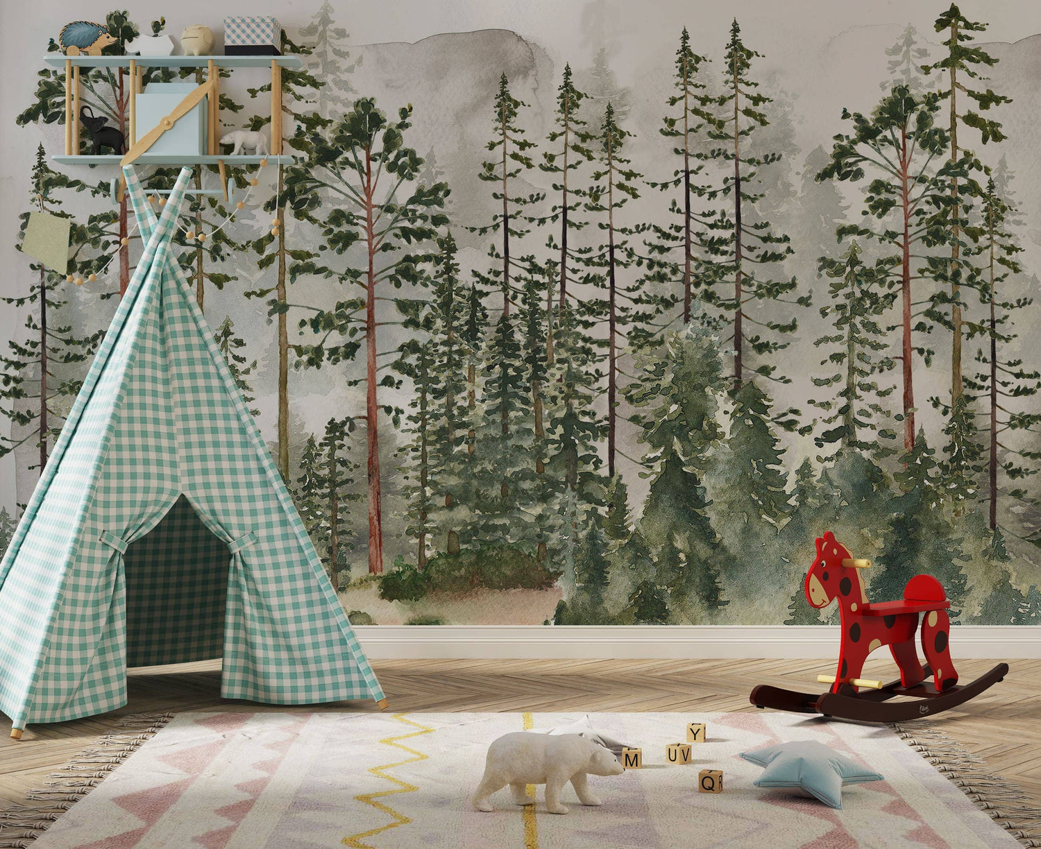 Pine Tree Forest Wallpaper | Watercolor Forest Wall Mural