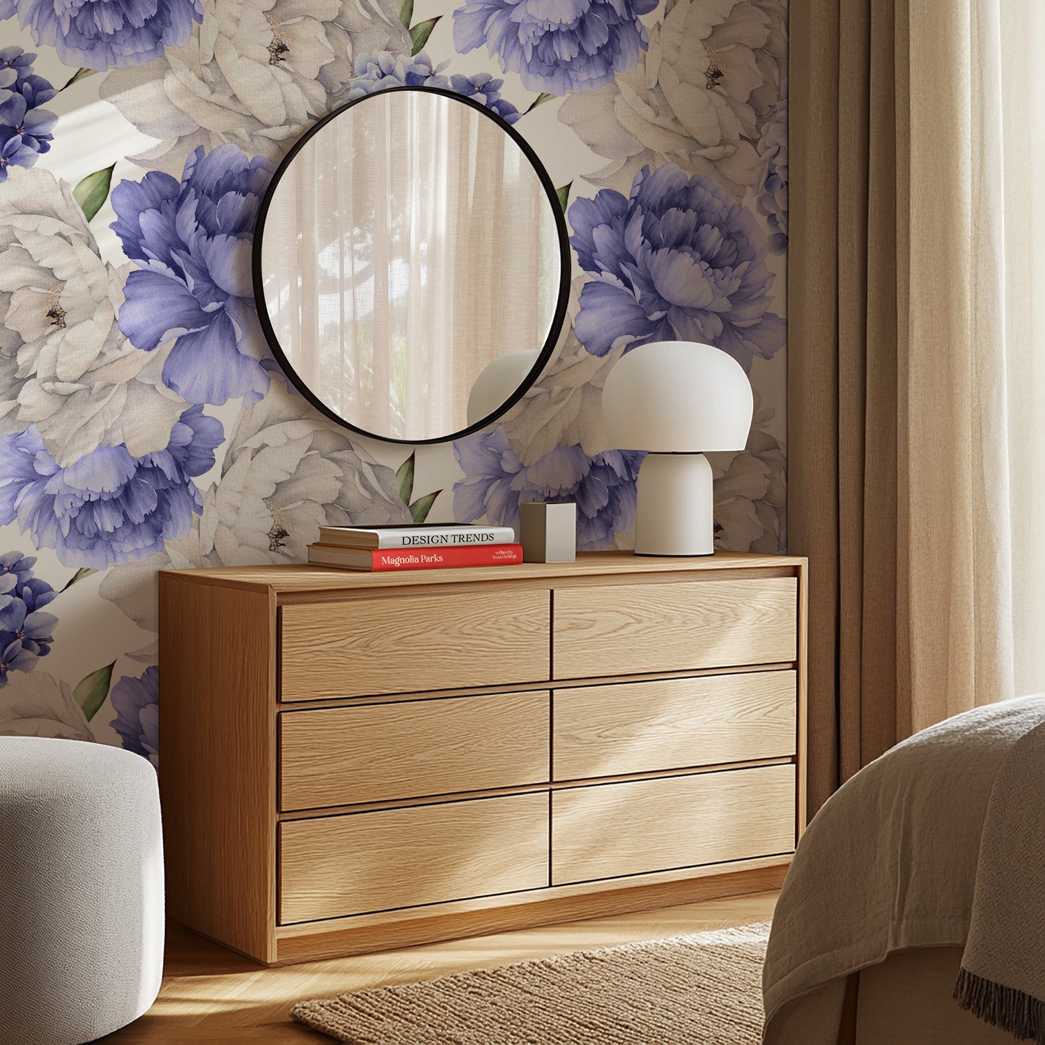 Purple and White Peony Bouquet Wallpaper - Elegant Floral Peel and Stick Wallpaper