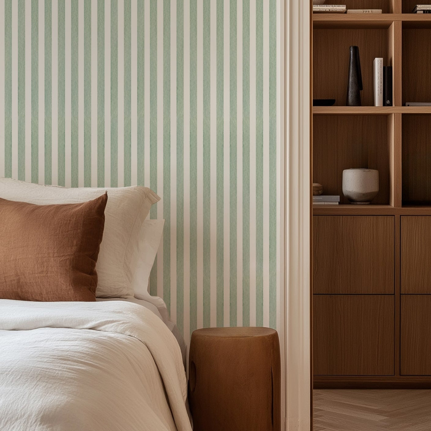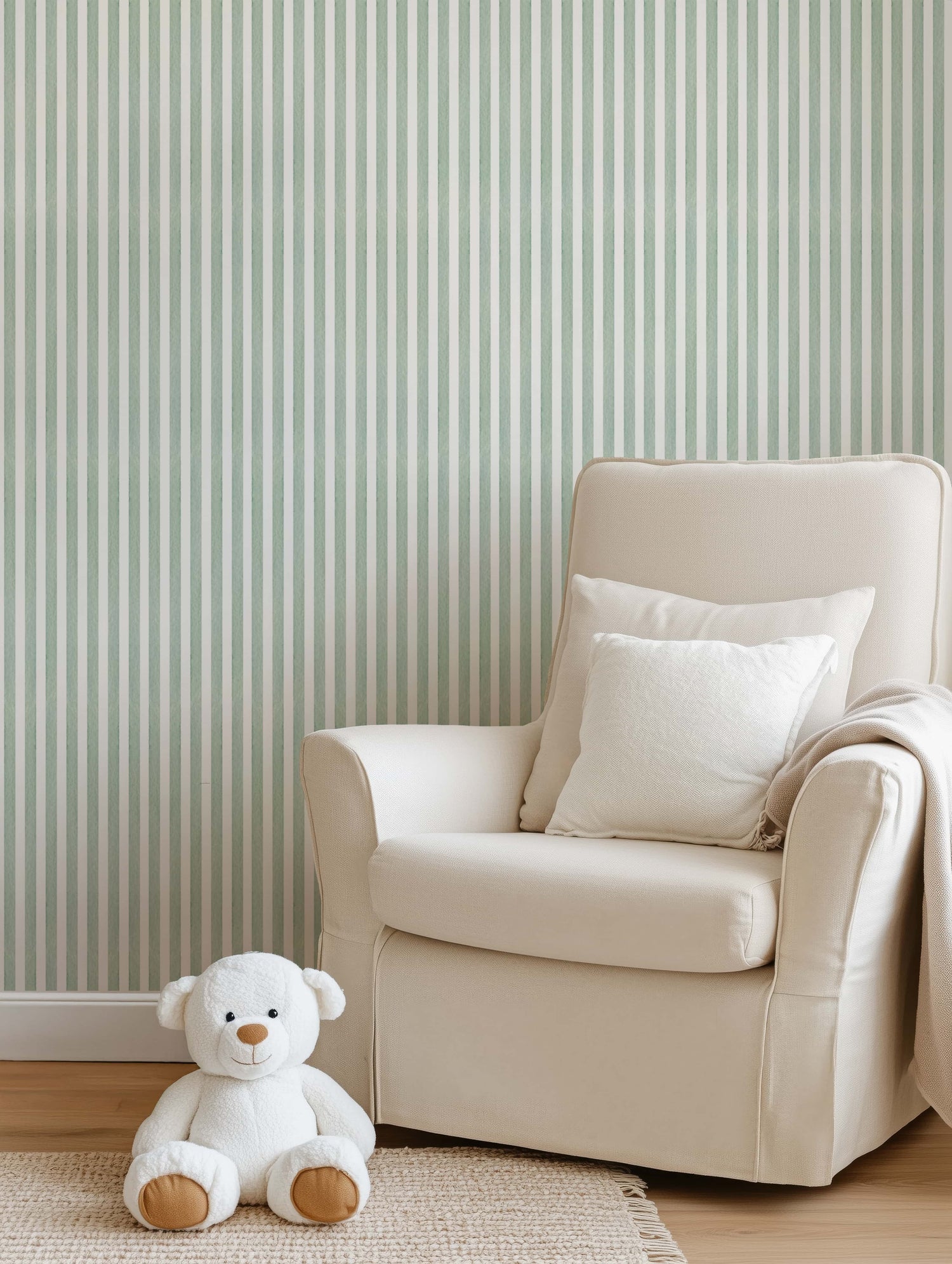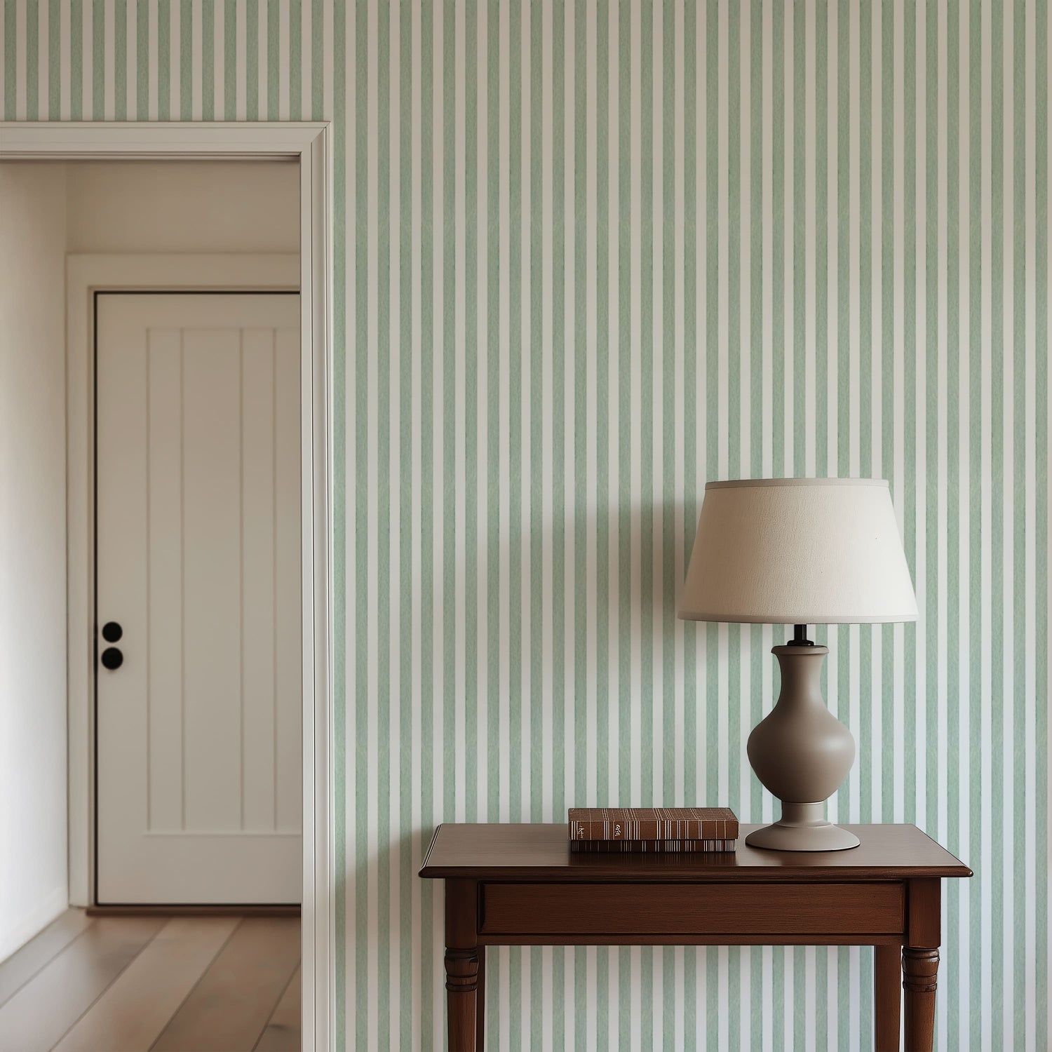 Serene Farmhouse Stripe Wallpaper - Calming Green Vertical Design