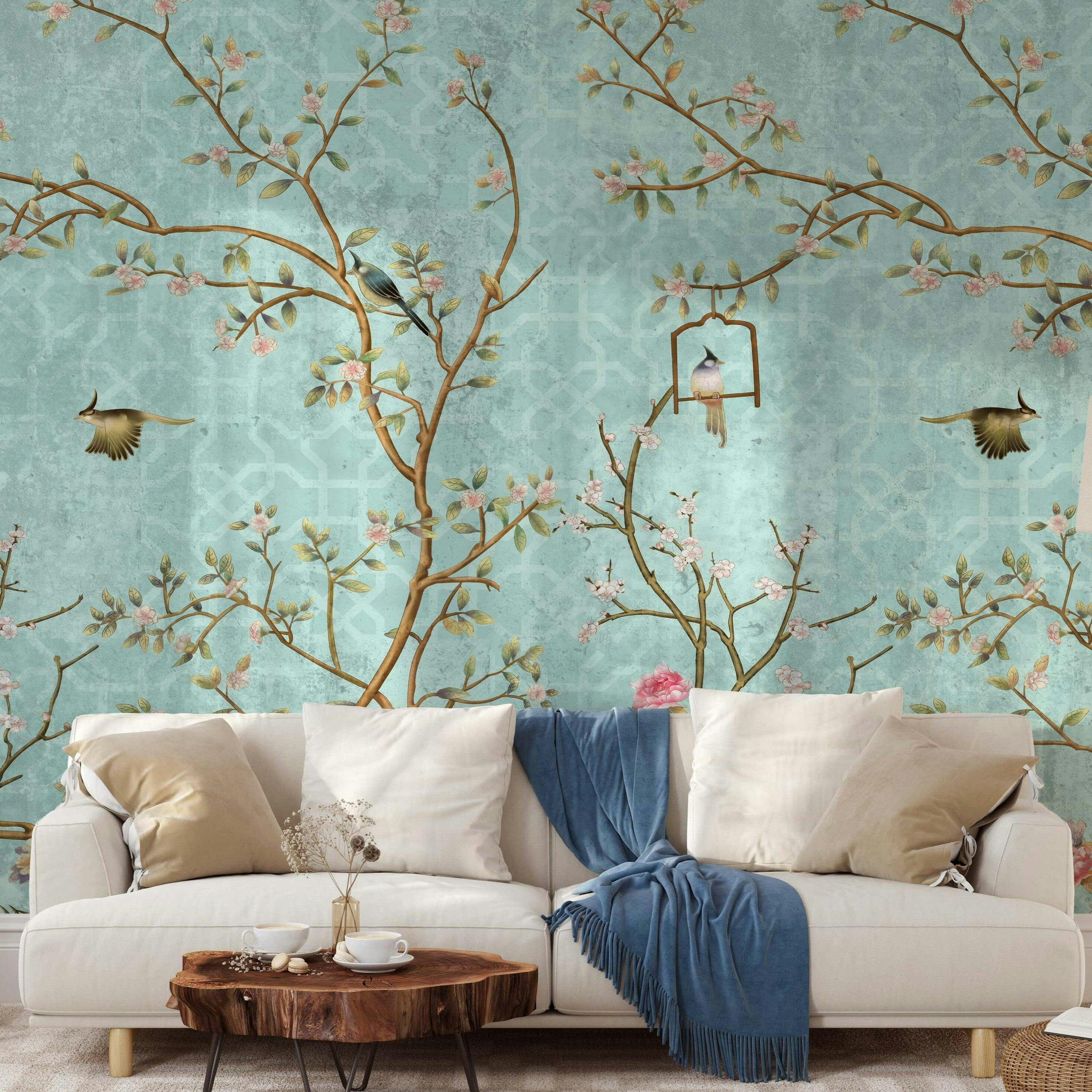 Add a touch of elegance with our Vintage Blue Chinoiserie Wallpaper Mural. Featuring delicate birds and flowers, this wallpaper will bring a vintage charm to any space. Transform your room with this classic design, perfect for creating a peaceful and sophisticated atmosphere.