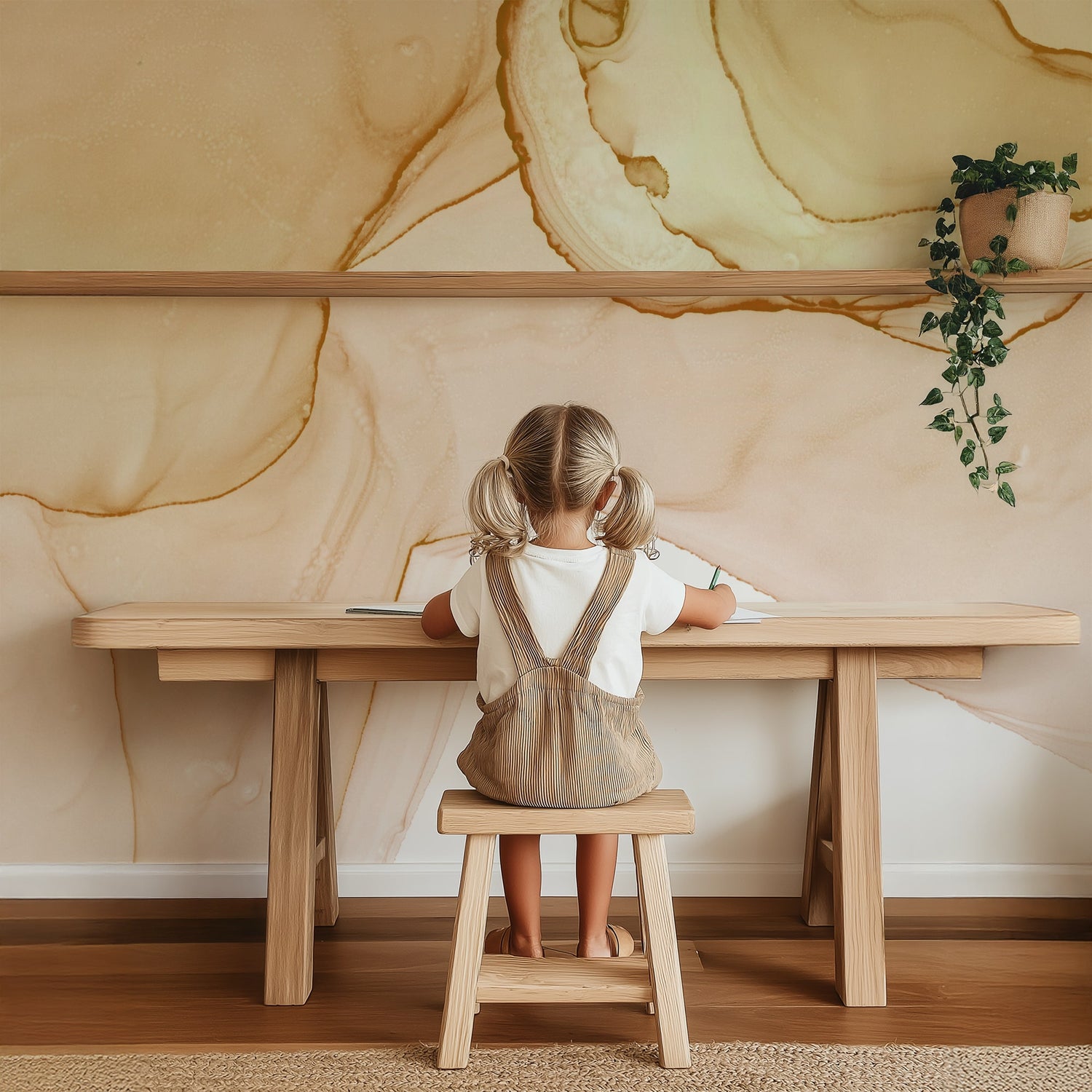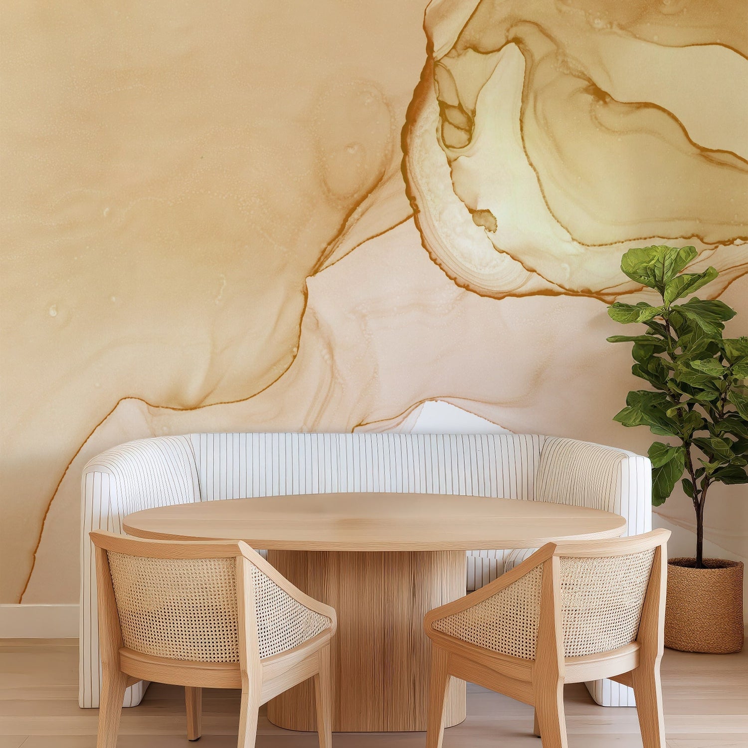 Bring warmth and softness to your space with this yellow alcohol ink wall mural, featuring organic flowing textures and a soothing, airy visual movement. The light golden tones create a calm yet modern atmosphere, suitable for both residential and commercial interiors.